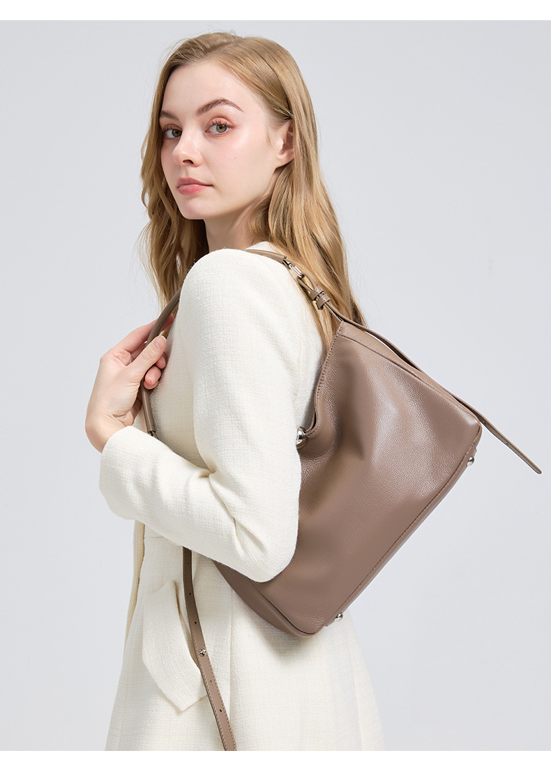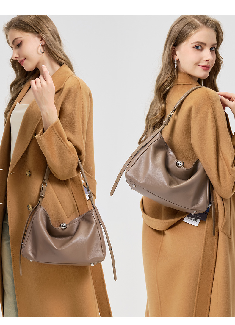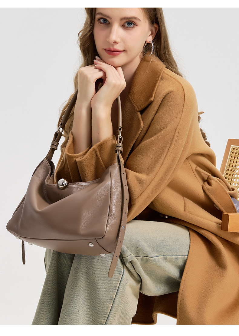 Trendy elements: Solid color, stitching, rivets, lychee grain